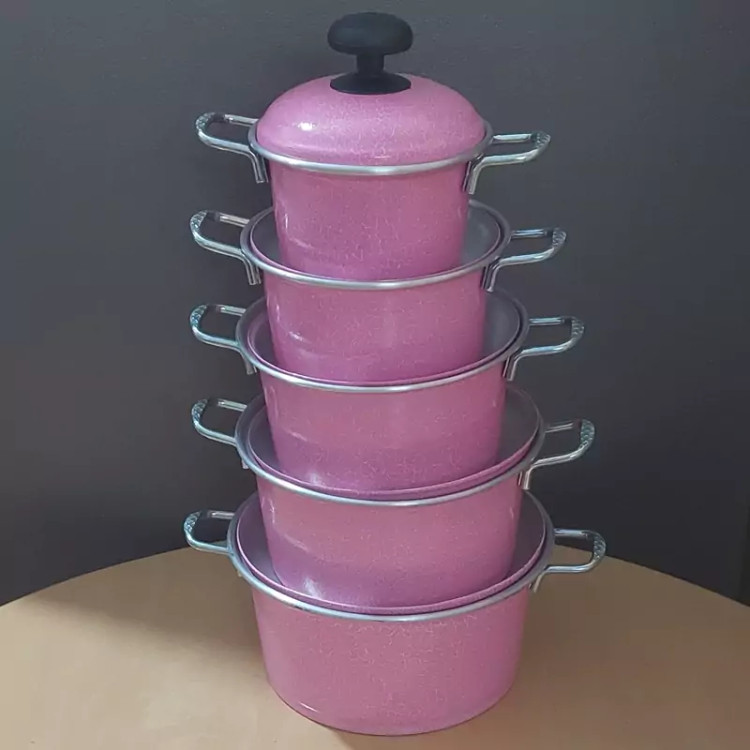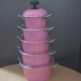 قابلمه روحی رنگی دسته دار 5 عددی درب دار در 5 سایز مختلف رنگ کوره ای و مقاوم در سایز های 21 و 19 و 18 و 15 و 13 سانتیمتر مناسب پخت و پز سالم و بدون مواد شیمیایی و مضر