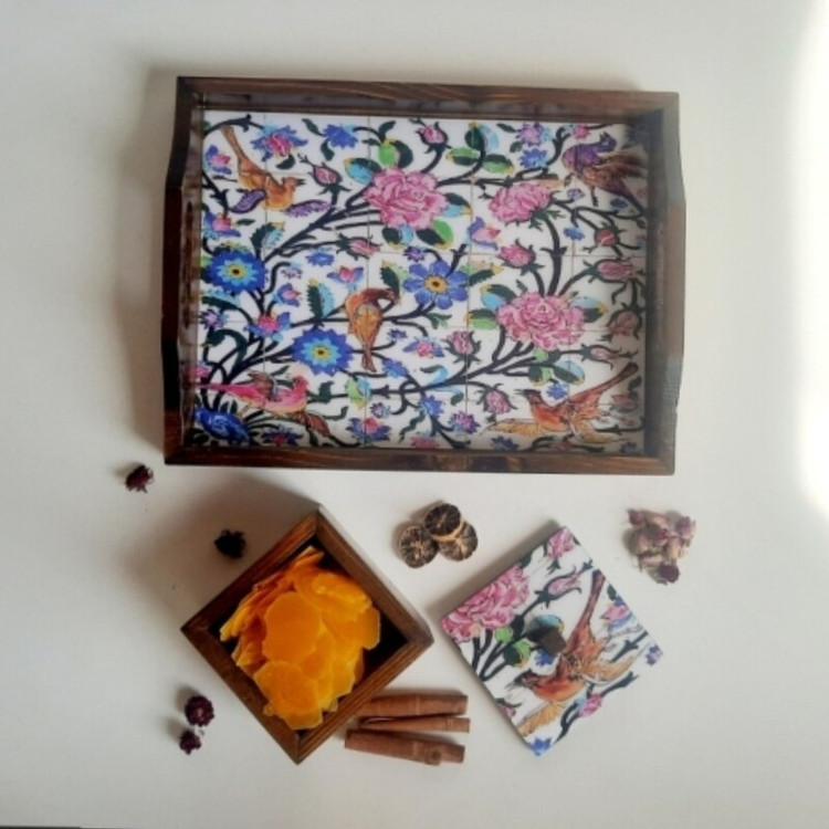 سینی چوبی پذیرایی و قندان تمام چوب روس
