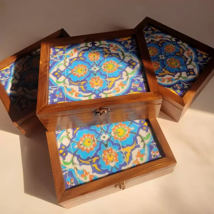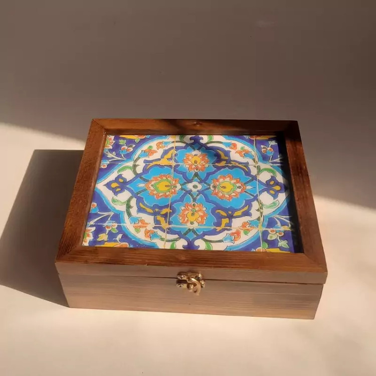 جعبه چوبی دمنوش و چای طرح لاجوردی