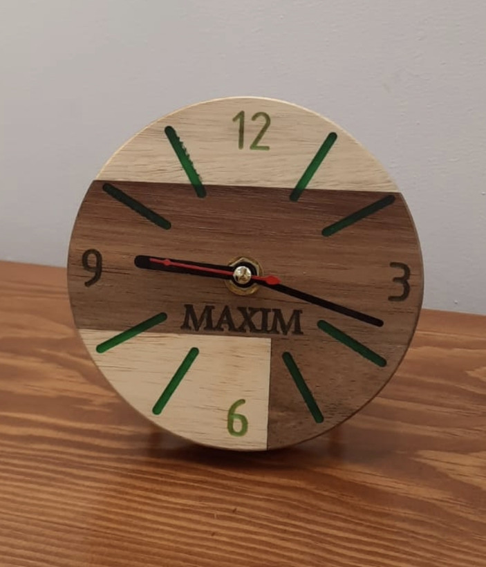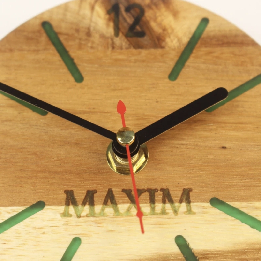 ساعت رومیزی چوبی رزینی، تلفیقی از چوب طبیعی آکاسیا و اعداد رزینی منحصربهفرد است.