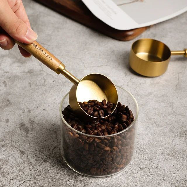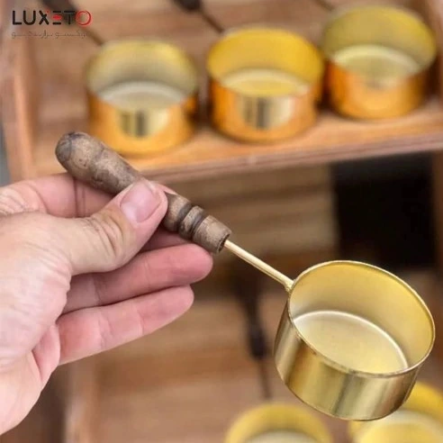 خرید پیمانه باریستایی برنجی با دسته چوبی