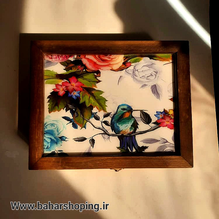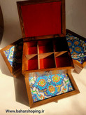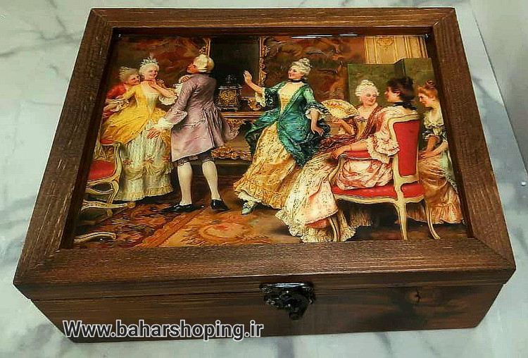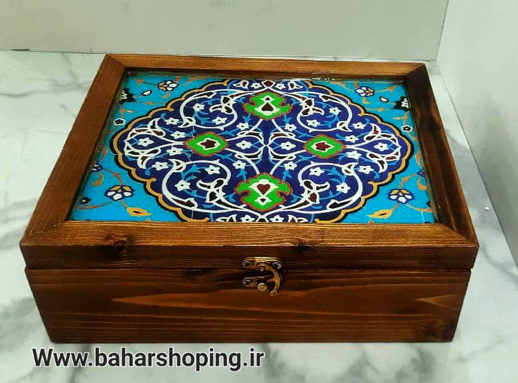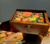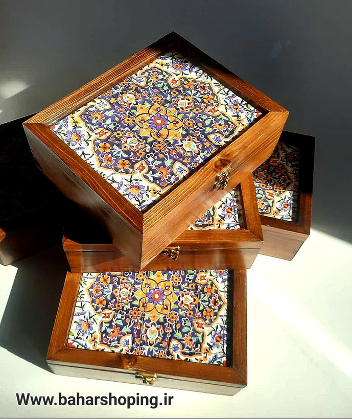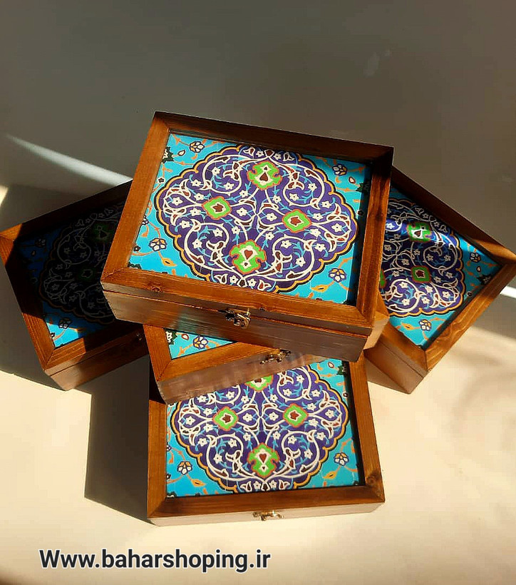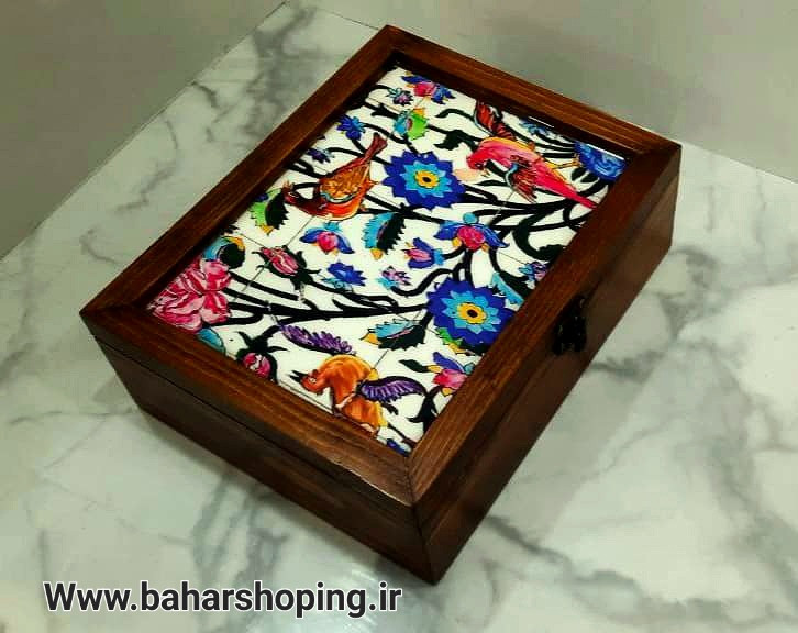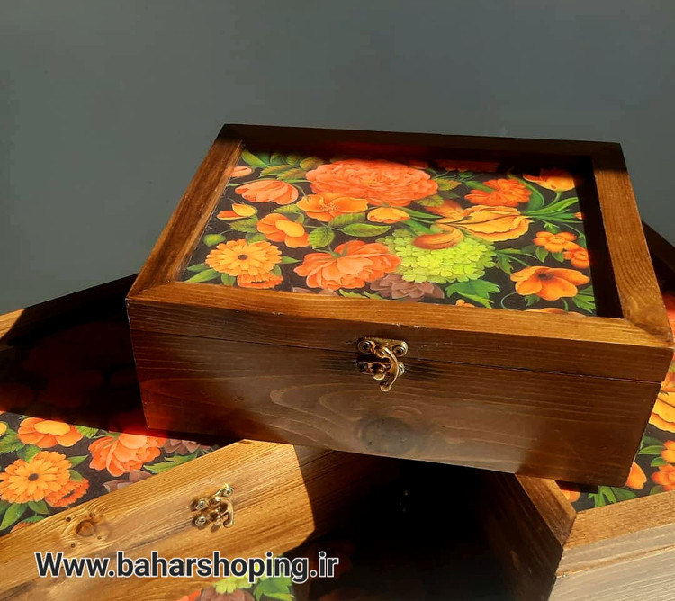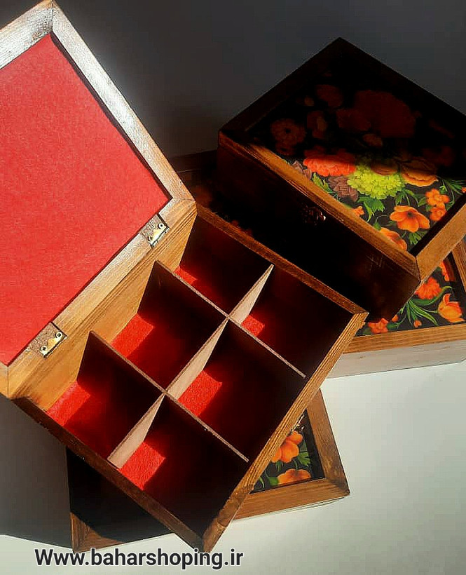 تیباکس و صندوقچه چوبی طرح‌دار با روکش رزین، مناسب دمنوش، جواهرات و لوازم شخصی