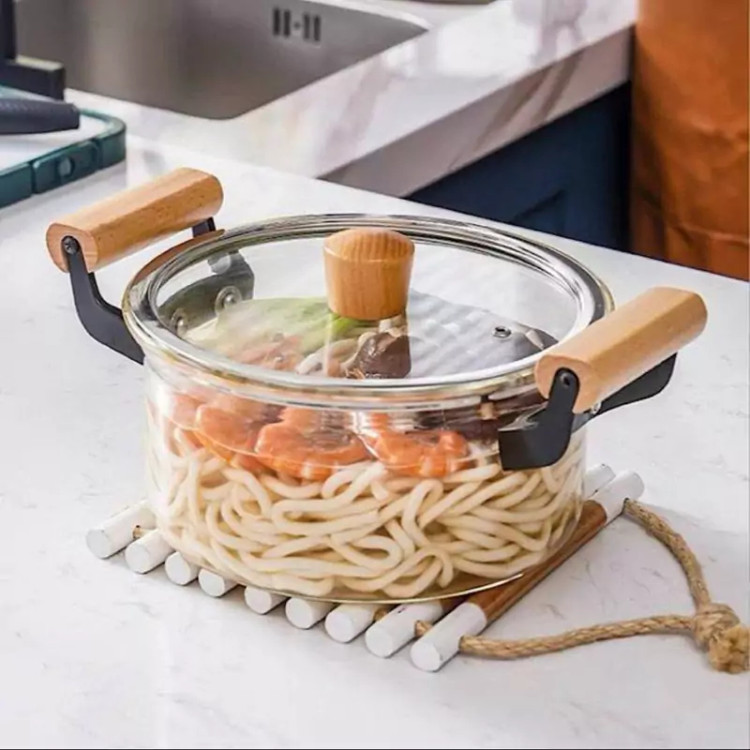 قابلمه پیرکس وارداتی ۳.۵ لیتری با دسته چوبی، گزینهای بینظیر برای طرفداران آشپزی سالم است. جنس بدنهی پیرکس شفاف، کاملاً فاقد مواد شیمیایی مضر مانند فلزات سنگین و تفلون بوده و در برابر حرارت مستقیم و شوک دمایی مقاومت بسیار بالایی دارد.