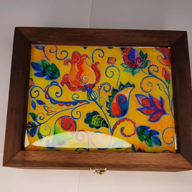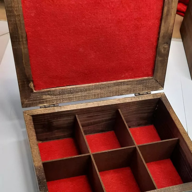 تیباکس چوبی طرحدار رزینی ۶ خانه، مناسب دمنوش، زیورآلات و صندوقچه نگهداری طلا