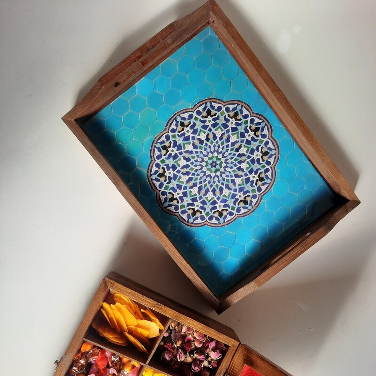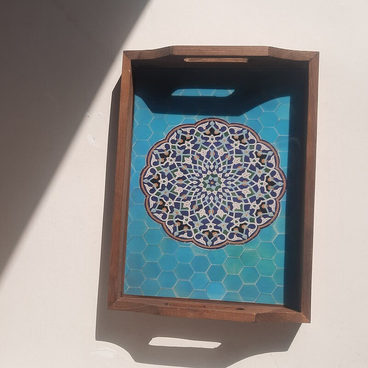 سینی چوبی طرحدار رزینی از چوب روس